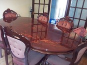 Glass Bowl 159. Geo Inlaid Tray 160. Vict Style 2 Leaf Mah Dining Table 161. Set of 4+4 Vict Mah Dining Chairs 162. Chippendale Style Mah Hall Dining table 9.6 X4.3 200. Set of 11Early Vict Mah Dining Chairs 201. Vict Steel Fire Fender & Iron 202. 3 Brass Candle Holders ... Retrieve Content
